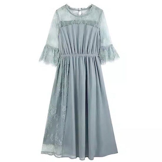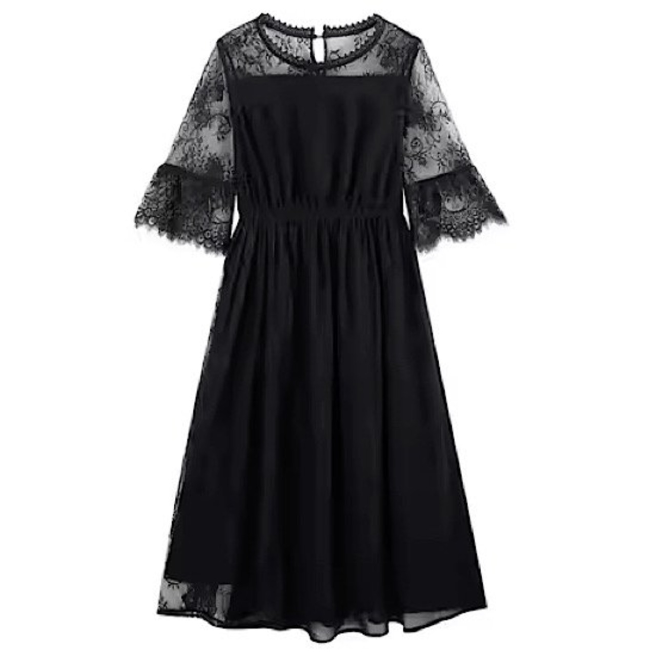 シースルー素材とシフォントランペットスリーブが華やかさを演出。