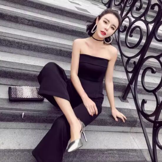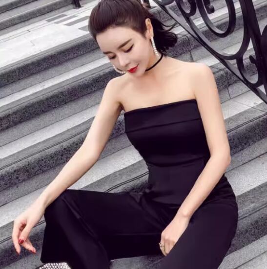 パンツドレス レディース ジャンプスーツ チューブトップ ハイウエスト ワイドパンツ シンプル 無地 ブラック シック クール かっこいい きれいめ スタイリッシュ お呼ばれ フォーマル パーティー