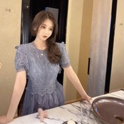 重なったレースが華やかなワンピースドレス。