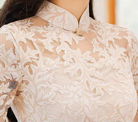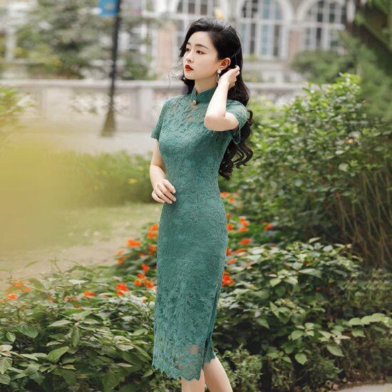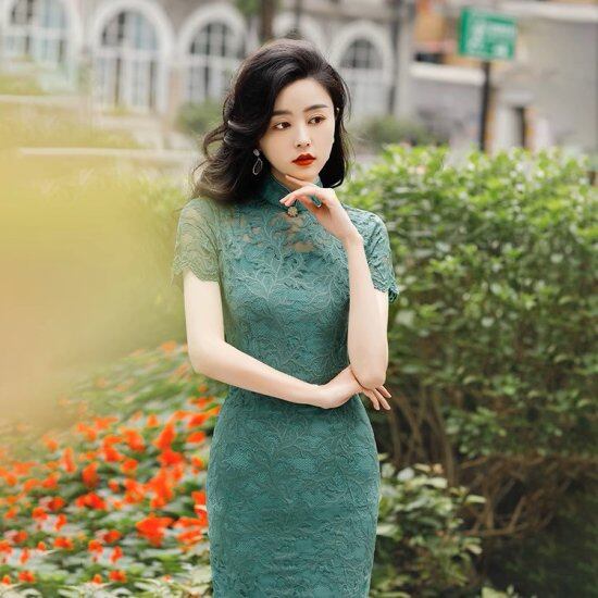 パーティードレス レディース チャイナドレス レース 半袖 スタンドカラー タイト スリム スリット ひざ丈 ミモレ丈 ロング エレガント 華やか 3color 結婚式 披露宴 謝恩会 おしゃれ