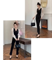シャープなブラックのパンツドレス。