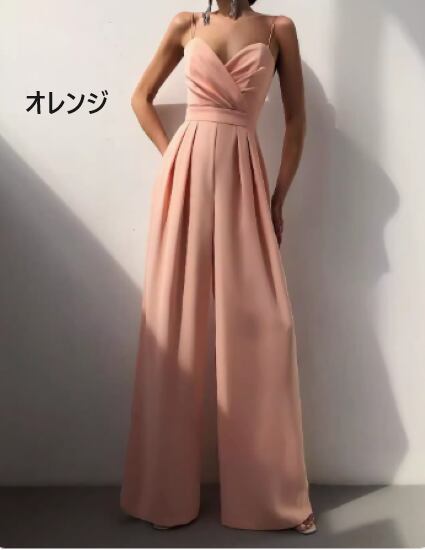 パンツドレス レディース ジャンプスーツ チューブトップ パーティードレス ワイドパンツ ハイウエスト サスペンダー 結婚式ドレス 演奏会ドレス シンプル 無地 きれいめ エレガント お呼ばれ 二次会