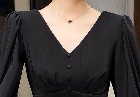 シックなブラックでもふんわりとしたラインでフェミニンな雰囲気に♪