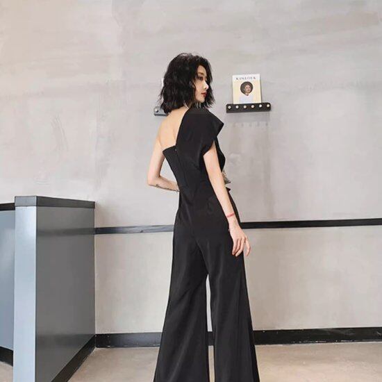 パンツドレス レディース オールインワン ワンショルダー ノースリーブ ワイドパンツ ジャンプスーツ 肩出し ロング マキシ アシンメトリー エレガント 結婚式 演奏会 披露宴 謝恩会 おしゃれ