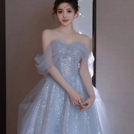 演奏会ドレス レディース パーティードレス オフショルダー ベアトップ Aライン プリンセス フレア チュールレース エレガント 華やか ロング マキシ 結婚式 披露宴 カラードレス おしゃれ