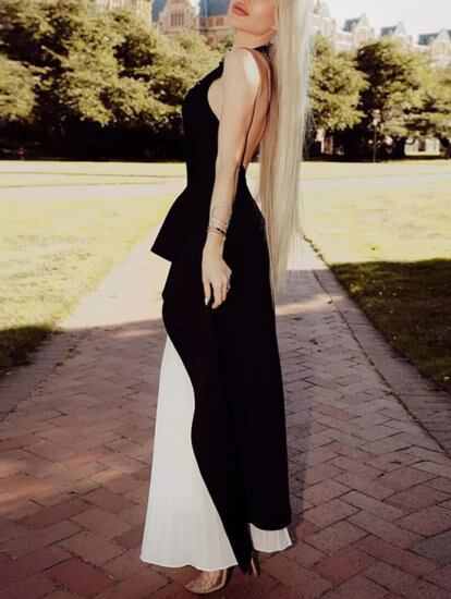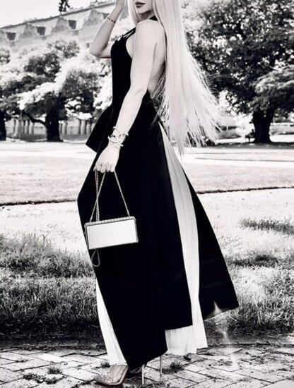 スタイリッシュなホルターネックのセットアップドレス。