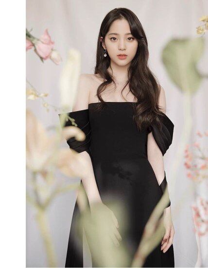 すっきりとしたシルエットのオフショルダーロングドレス。