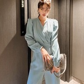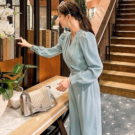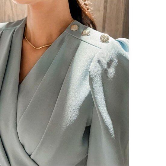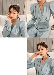 パンツドレス レディース オールインワン 長袖 Vネック カシュクール ワイドパンツ ハイウエスト タック パフスリーブ ロング エレガント 結婚式 演奏会 披露宴 謝恩会 パーティー おしゃれ
