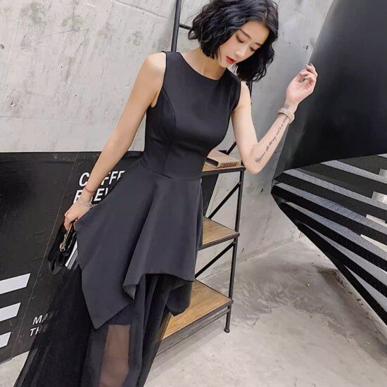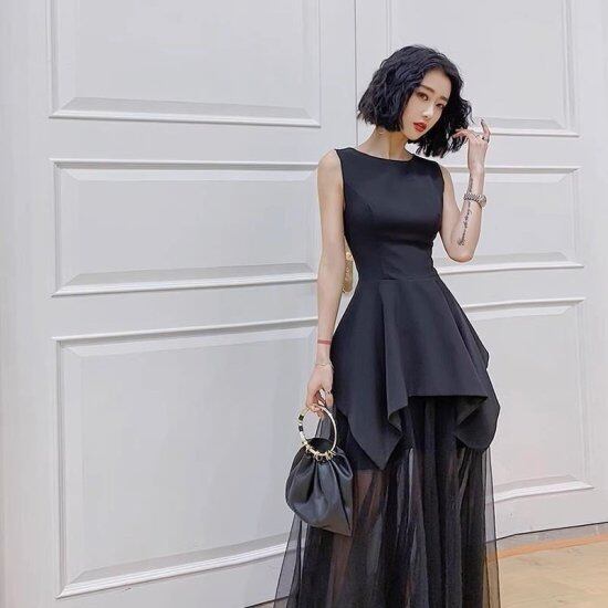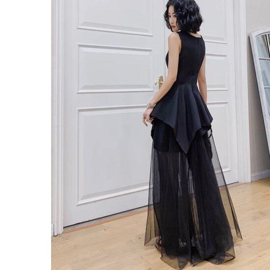 パーティードレス レディース ロングドレス シースルー ノースリーブ ペプラム ラウンドネック 袖なし 透け感 レース 華やか エレガント 結婚式 演奏会 謝恩会 二次会 イブニングドレス おしゃれ