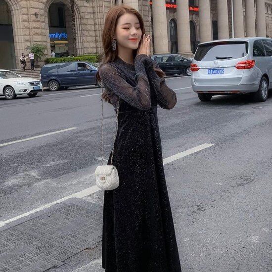 パーティードレス レディース セットアップ 長袖 ベルベット キャミソールワンピース Vネック プルオーバー ハイネック キラキラ エレガント かわいい 結婚式 謝恩会 二次会 パーティー おしゃれ