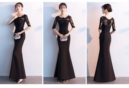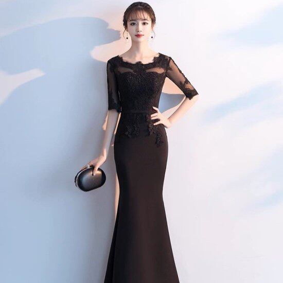 パーティードレス レディース 演奏会ドレス マーメイド 半袖 ラウンドネック ロング マキシ スリム タイト フィッシュテール エレガント 2color 結婚式 披露宴 謝恩会 イブニングドレス