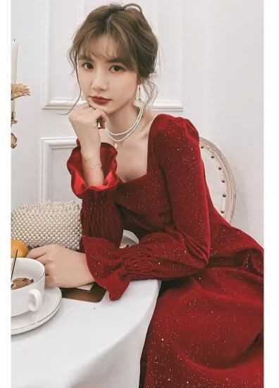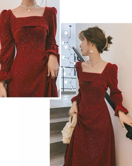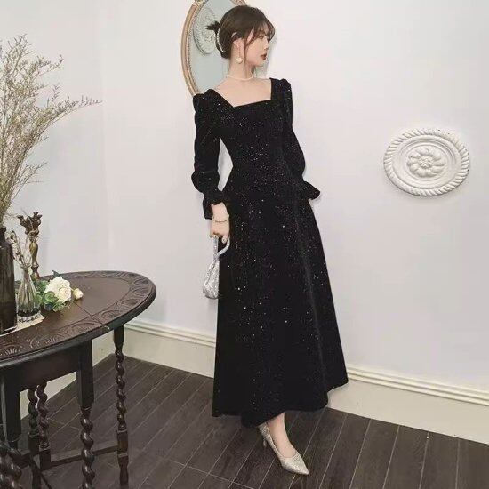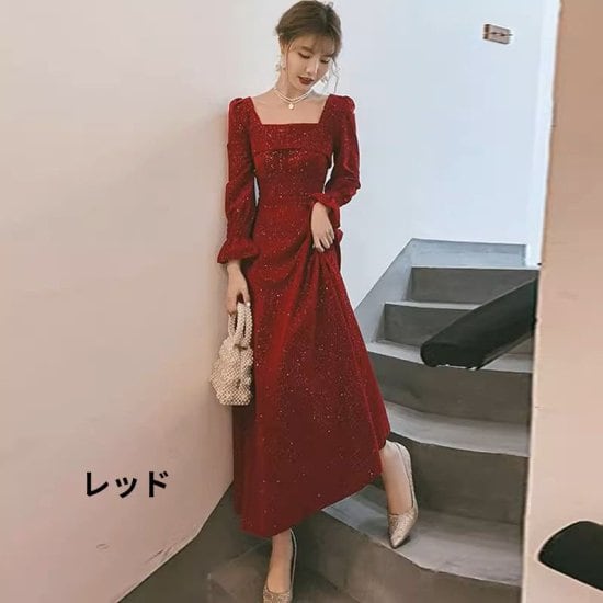 パーティードレス レディース 演奏会ドレス 長袖 パフスリーブ スクエアネック ロング マキシ レトロ クラシカル エレガント 結婚式ドレス 披露宴 謝恩会 二次会 イブニングドレス おしゃれ