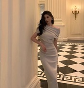 パーティードレス レディース 演奏会ドレス ワンピースドレス 結婚式ドレス ロングワンピース ロングドレス スリムフィット ワンショルダー オフショルダー きれいめ シンプル エレガント お呼ばれ