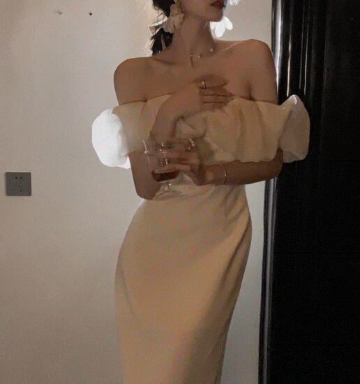 パーティードレス レディース 演奏会ドレス オフショルダー ノースリーブ 肩出し タイト スリム ロング ミモレ レトロ クラシカル 肌見せ セクシー エレガント 謝恩会 2color おしゃれ